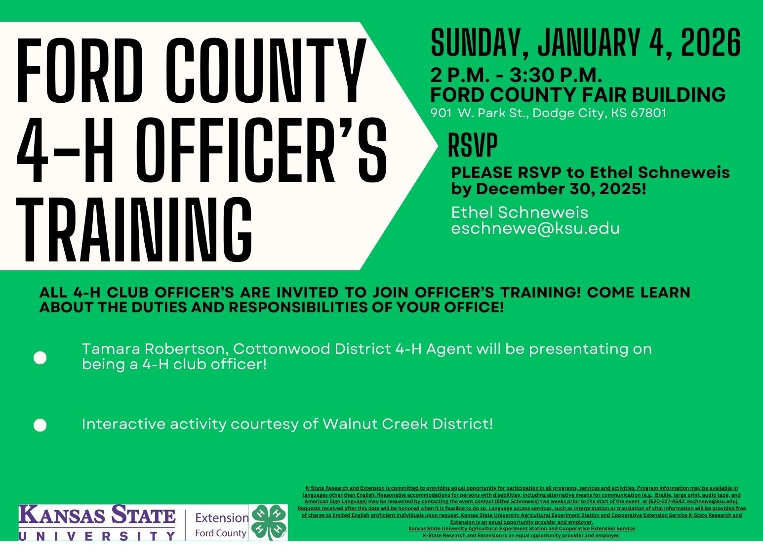 4-H Officer's Training RSVP to eschnewe@ksu.edu by Dec. 30